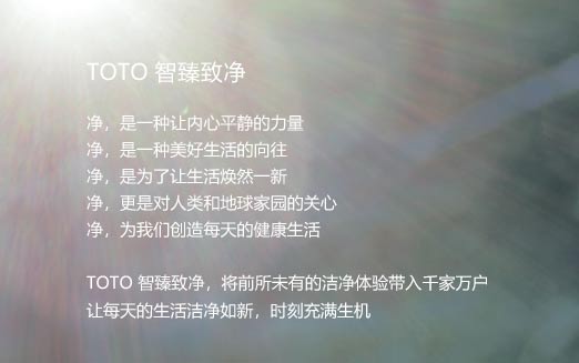 Green Challenge,TOTO新環保愿景確立。TOTO不斷地推出節能、環保產品。開發出WASHLET產品后,TOTO開始通過引進高端的標準廚房用品,將其先進的技術投向其它產品領域。