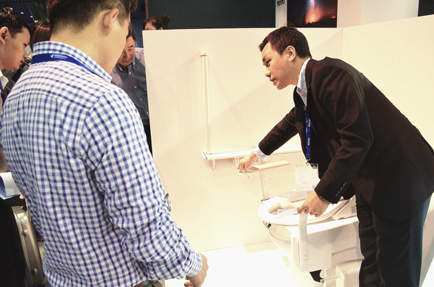 前沿的產品技術,舒適的展示空間,使TOTO成為展覽會期間的人氣王。來自廣州的與會觀眾陳先生說道,“展廳很生活化,綠色的大自然空間讓人很舒服,展廳的產品都非常高科技,對我們老年人來說真的是很貼心。” 來自香港的采購商黃先生也對TOTO針對老齡人的產品表示贊賞,“(產品)特別棒,能夠從用戶角度出發,相信能為老齡人等特殊人群帶來便利,有很大的市場空間。”