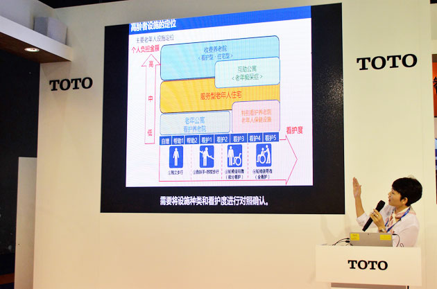在展會期間,TOTO現場進行了一場針對中國老齡化的報告發布會。發布會指出,中國已進入老齡化社會, 老年人需要更多的關懷與照顧,企業和社會需要更多地站在老齡人群體的角度出發,了解他們在健康保障上的需求。來自上海的采購商盧小姐指出,“日本在應對老齡化社會方面有較多經驗,TOTO針對老齡化的配套產品非常出色,期待之后更多的產品設計。”
