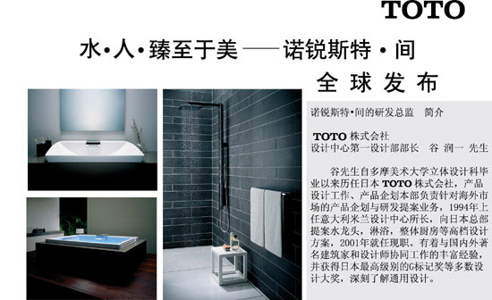 TOTO創新于業界的概念性頂級衛浴套裝—諾銳斯特?間近期在中國乃至全球同步發售,應發了整個行業的不小震動。