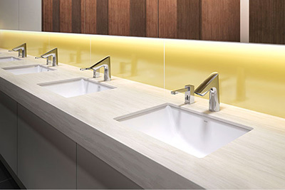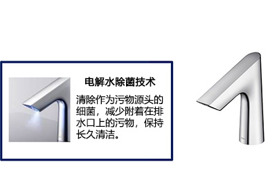 一直以來,TOTO始終致力于營造舒適、潔凈的公共衛生空間,不斷提案商品與空間的新方案。近來,隨著人們衛生意識的提高,公共空間的自動感應類產品越來越受到人們的重視,特別是自動感應水嘴,無需接觸就能完成清洗,而且免觸感應更避免了忘記關水嘴的情況發生,節水、環保。此外,出水口前端緊湊地設置了小型傳感器并搭載電解水除菌技術,清潔除菌,安心衛生。
