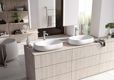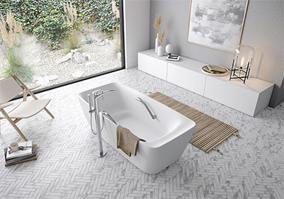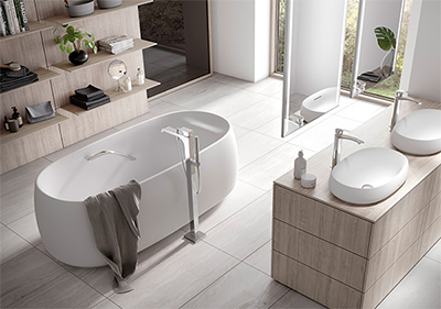 浴缸和洗面器都采用了晶雅石材質,高強度質地并兼具優美外形。浴缸和洗面器風格統一,配套使用更能體現空間的統一感。另外,浴缸以人體工程學為基礎,提升入浴舒適感。洗面器的設計則考慮了洗手的便利性,并且不易濺水。