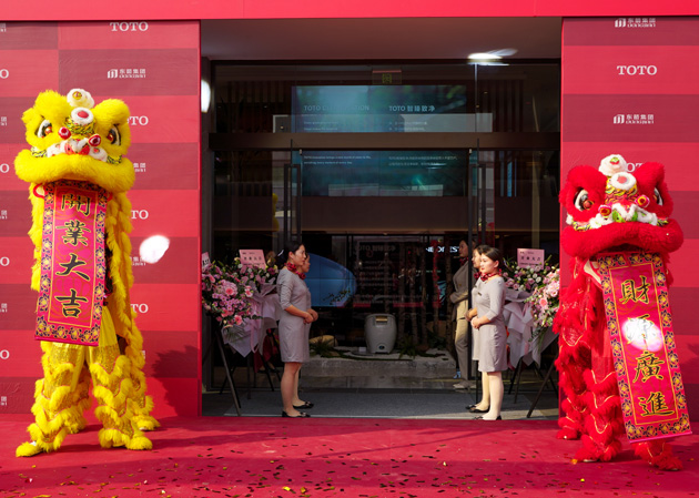 在諸位嘉賓的掌聲中,東陶(中國(guó))有限公司總經(jīng)理深澤徹和東箭集團(tuán)董事長(zhǎng)陳杭閩為祥獅點(diǎn)睛,為大家揭曉TOTO杭州旗艦店嶄新的面貌!